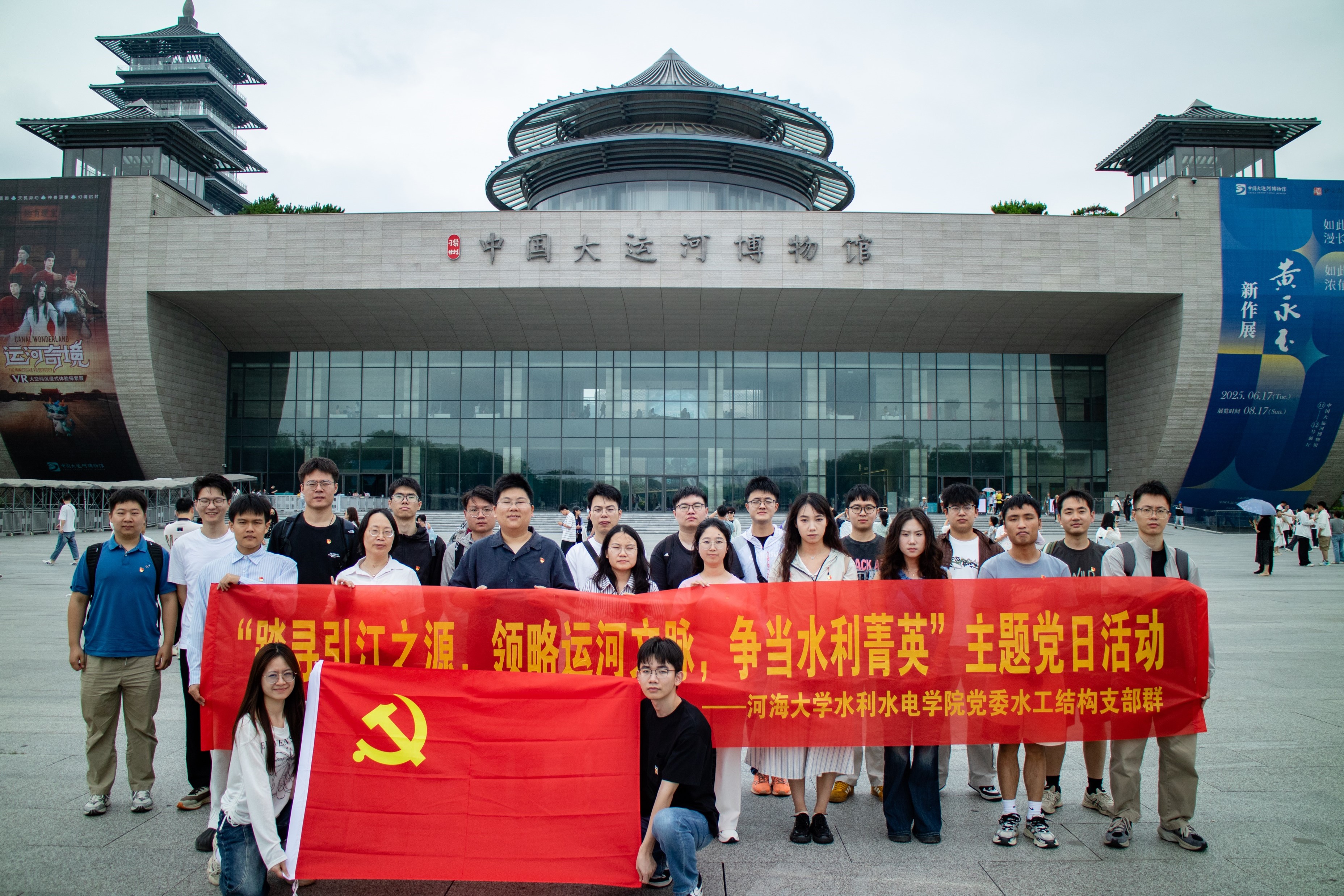 为深入学习习近平新时代中国特色社会主义思想和党的二十大精神,追寻习近平总书记足迹,强化党员理想信念与使命担当,6月24日,成人短视频 党委水工结构支部群(教师党支部、博士研究生第一党支部、博士研究生第二党支部、博士研究生第三党支部、硕士研究生第一党支部、硕士研究生第二党支部)组织开展“踏寻引江之源,领略运河文脉,争当水利菁英”主题党日活动。