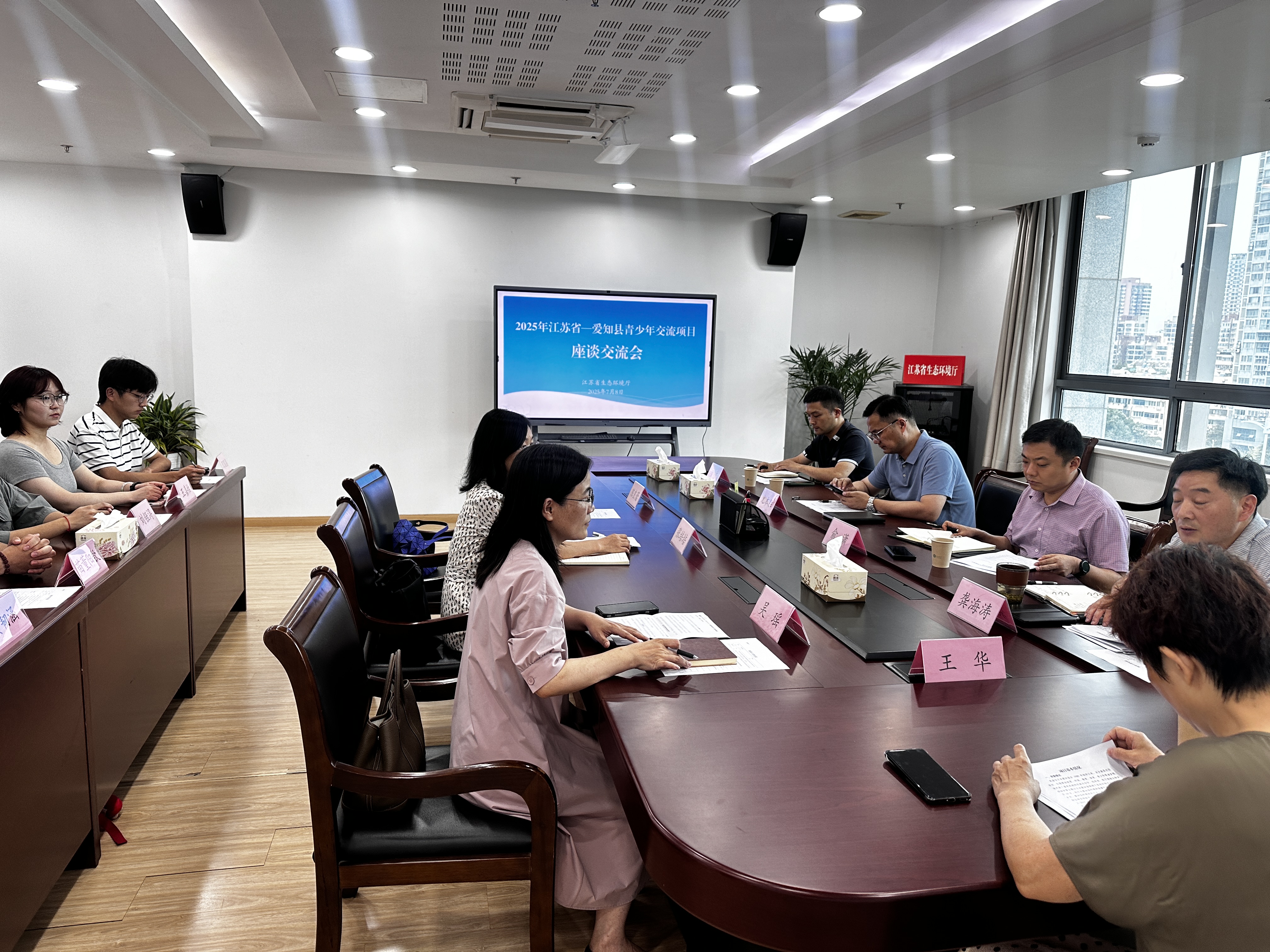 78日,为深化水资源保护与可持续利用领域的国际交流合作,成人短视频 代表团一行与江苏省生态环境厅成功举办赴日交流行前工作座谈会。此座谈旨在对赴日交流事宜进行探讨。成人短视频 国际合作处副处长吴瑶,成人短视频 院副教授张培培,外事秘书陈良蕾,本科学生代表7人参加座谈。座谈会由江苏省生态环境厅国际合作中心主任龚海涛主持。