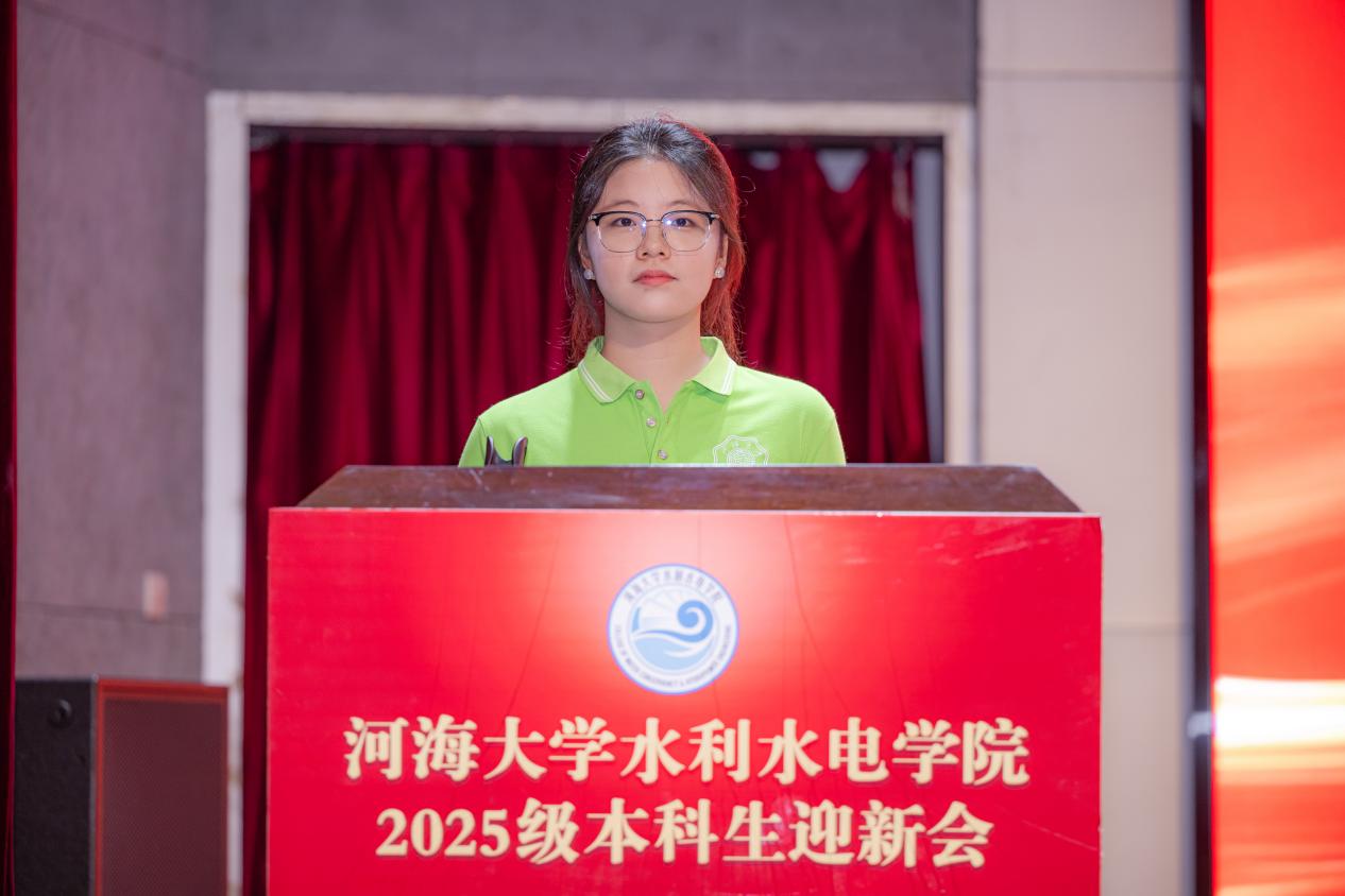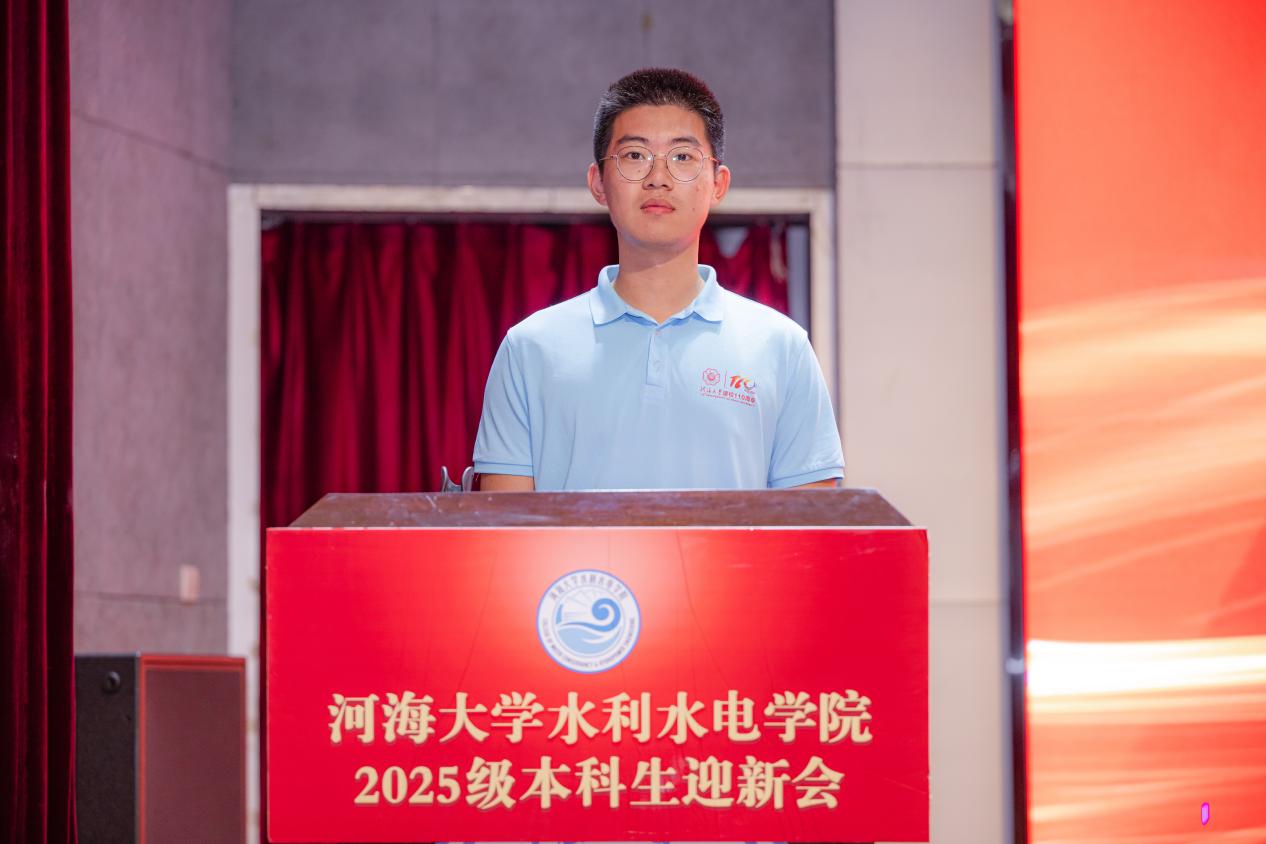 在校生代表2023级水利水电工程专业赵馨同学,结合自身大学经历,围绕“学习”“成长”“心态”三个核心方面,向2025级新生提出建议,希望同学们主动求索,积极尝试多元平台,学会沟通协作与包容,实现从“我”到“我们”的融入突破。