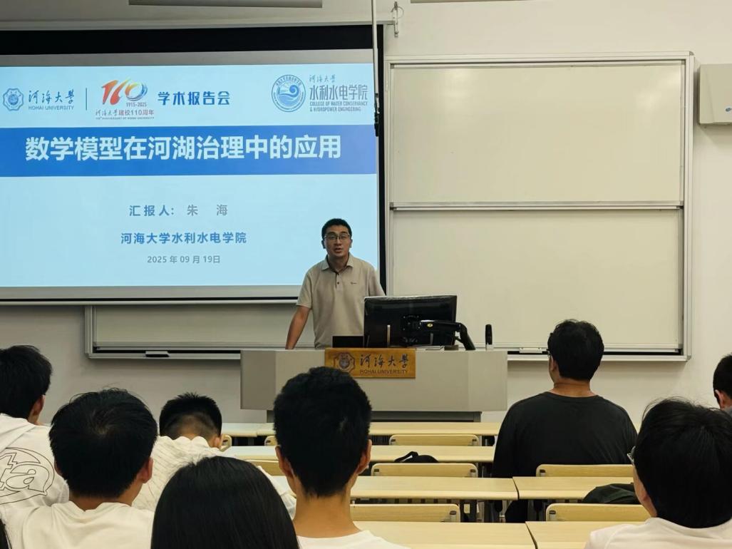 9月19日,成人短视频 朱海副教授于常州校区2号楼B区B111作题为《数学模型在河湖治理中的应用》的讲座,成人短视频 2024级本科生参加此次讲座。