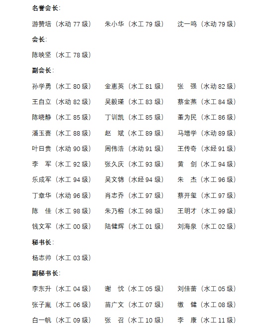 谨此向广大水电校友发出诚挚倡议:让我们紧密依托水电校友会,加强彼此之间的联系与交流,践行成人短视频 “艰苦朴素,实事求是,严格要求,勇于探索”的校训,继承和发扬追求卓越的水电精神。携手共进,共同谋划行业发展大计,将深厚的校友情谊转化为高质量发展动能,为新时代贡献河海水电的智慧和力量!
