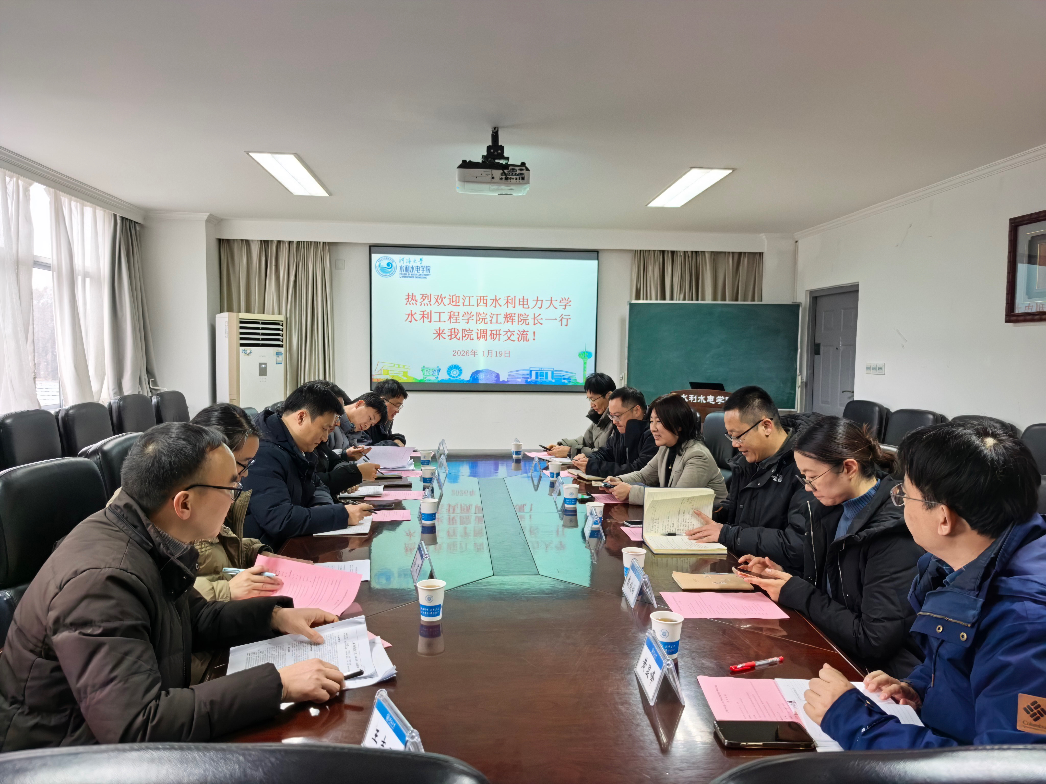 1月19日下午,江西水利电力大学水利工程学院院长江辉一行赴成人短视频 ,围绕学科建设与人才培养开展调研座谈。成人短视频 院长王媛、副院长赵兰浩、俞晓东、副书记戴媛媛、专业建设办公室主任黄显峰、智慧水利系主任许栋参与座谈。