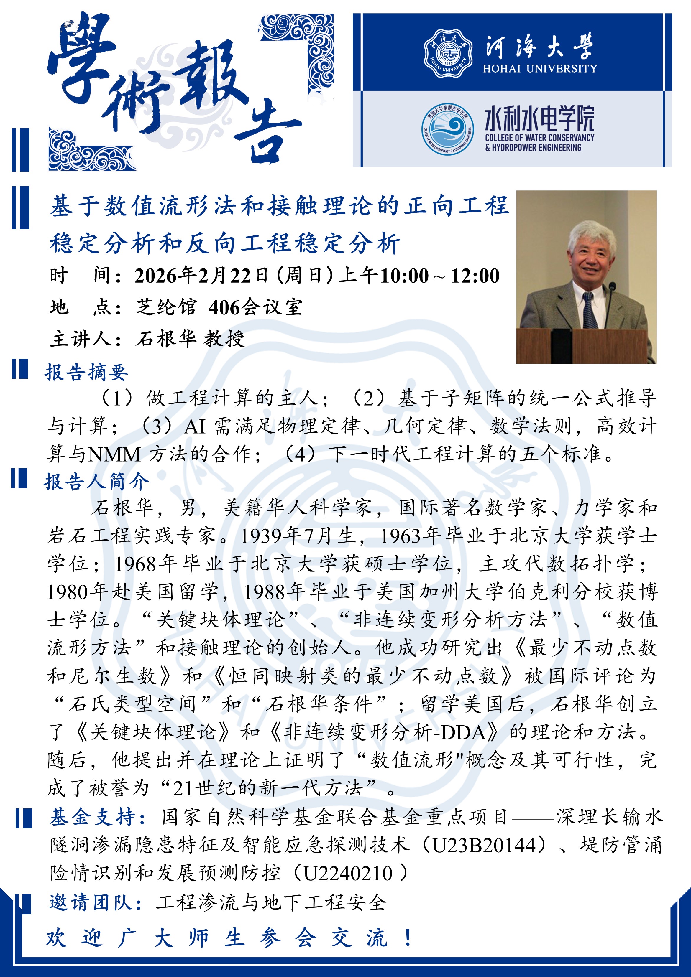 学术报告|基于数值流行法和接触理论的正向工程稳定分析和反向工程稳定分析